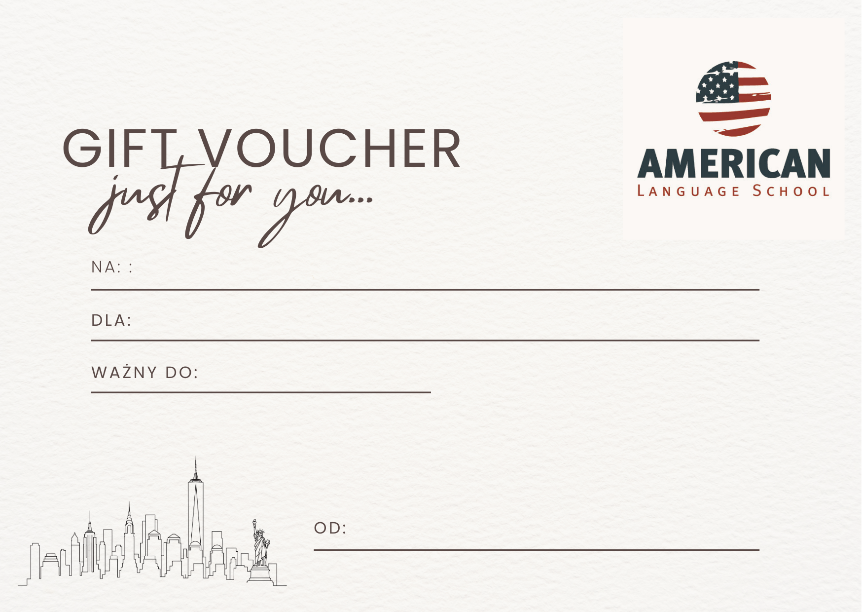 Spraw bliskiej osobie prezent i podaruj jej Voucher na zajęcia z języka angielskiego.